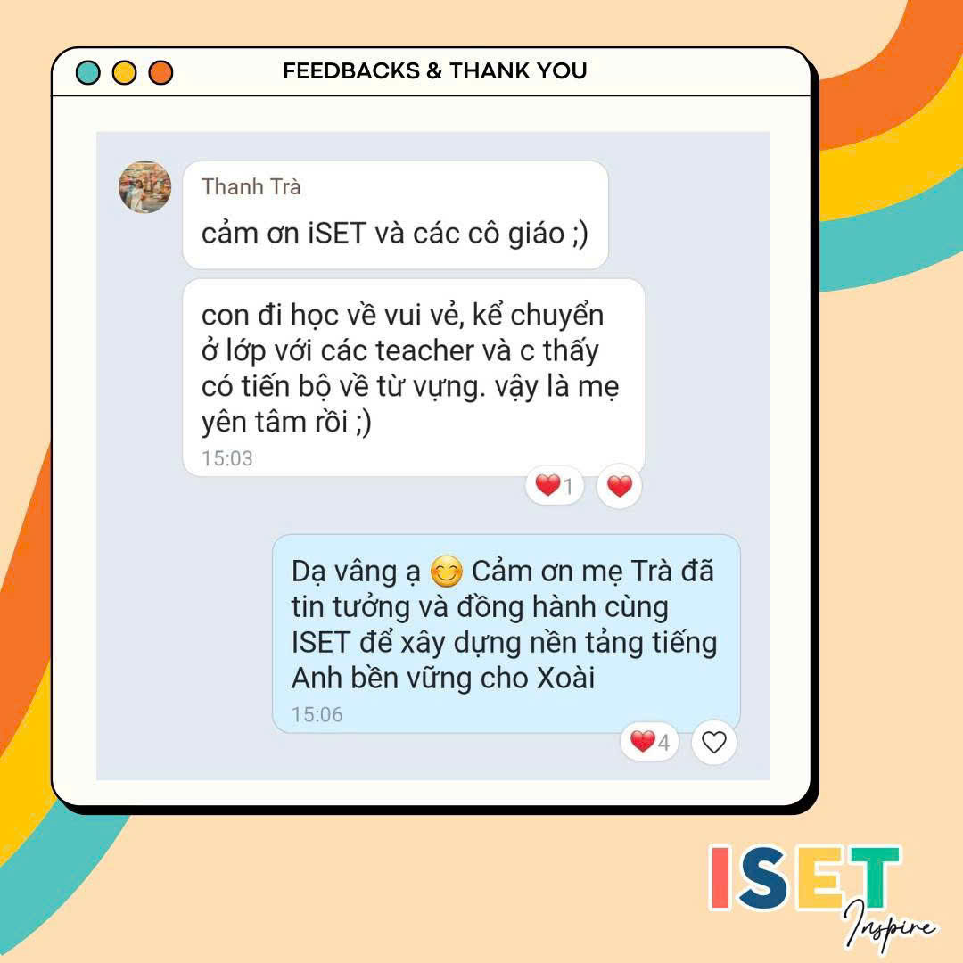 Nhờ những giá trị này, Trung tâm tiếng Anh ISET đang trở thành lựa chọn của nhiều phụ huynh khi tìm kiếm nơi học tiếng Anh tại ISET Vietnam cho con em mình.